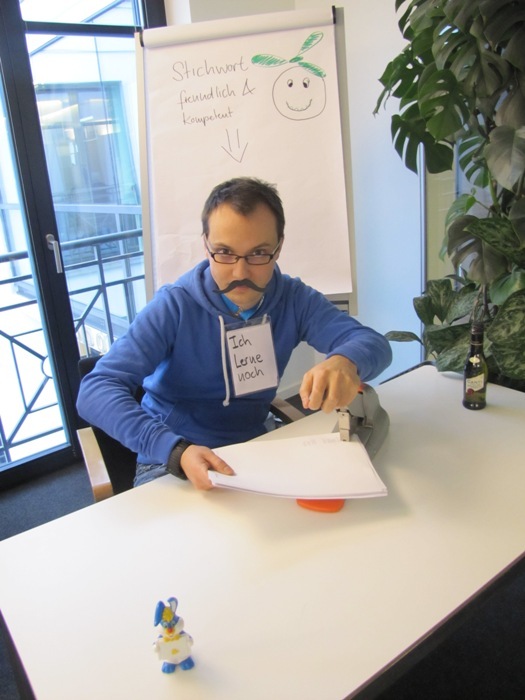…haben wir einen Kollegen fürs Tackern zugewiesen bekommen. Er lernt noch und bekommt deswegen erstmal nur kleine Papierstapel zum Bearbeiten. Er macht das wirklich ausgezeichnet – bald kann er bestimmt auch die großen Haufen übernehmen…