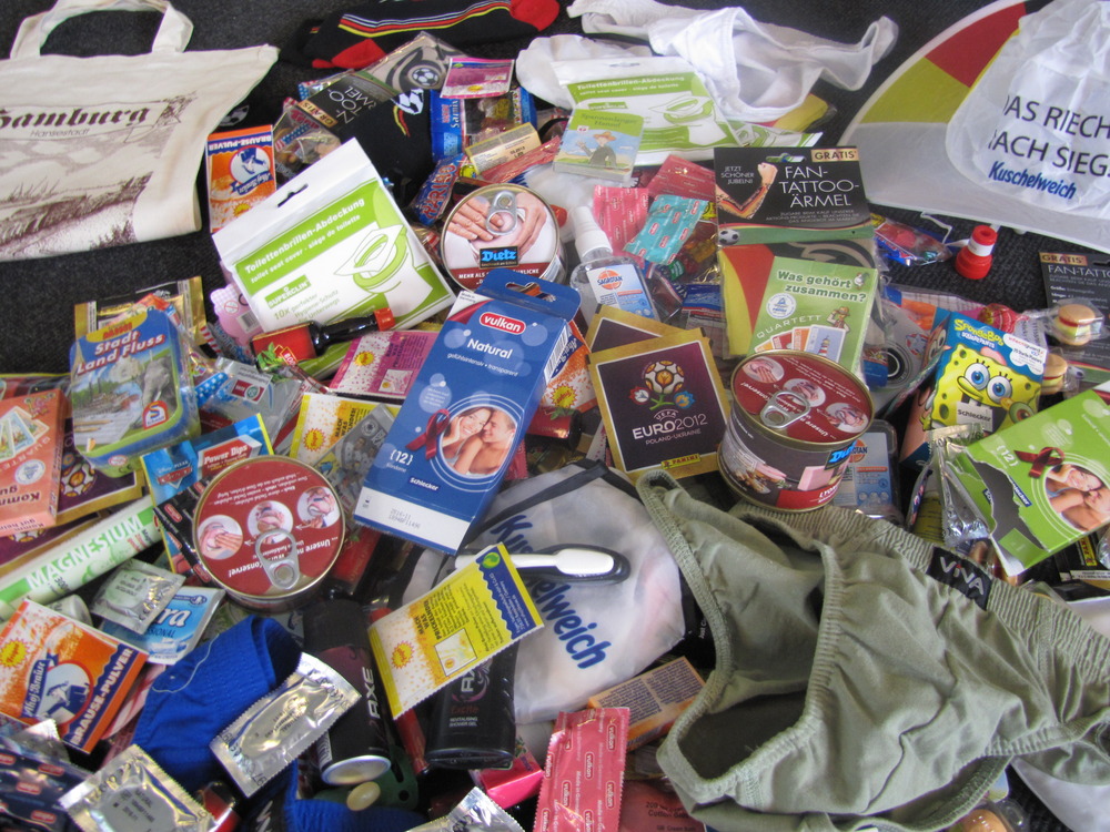 Um die Jungs gut auf den Weg zu bringen, hat unsere HR-Abteilung mal wieder keine Kosten und Mühen gescheut und der Mannschaft ein Carepaket mit auf die Reise gegeben. Darin war alles, was man für so eine Veranstaltung braucht: Frische Unterbuxen, die lecker, deftige Dietz Dosenwurst, der gute Boonekamp, Paninibilder, Reisespiele, Tattoo Ärmel, Sponge Bob Pflaster, Hornhautraspler und..und..und….