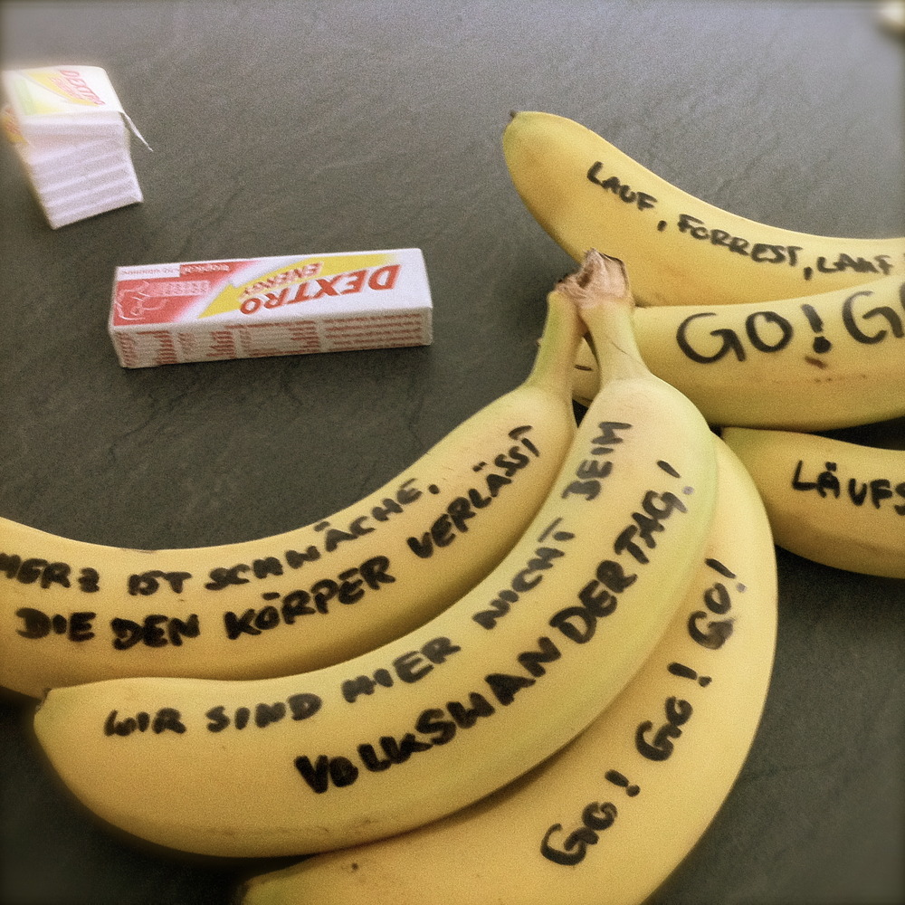 17:30 Uhr – Letztes Briefing für die Läufer und Motivationsbananen, gestiftet von den Fans. 🙂