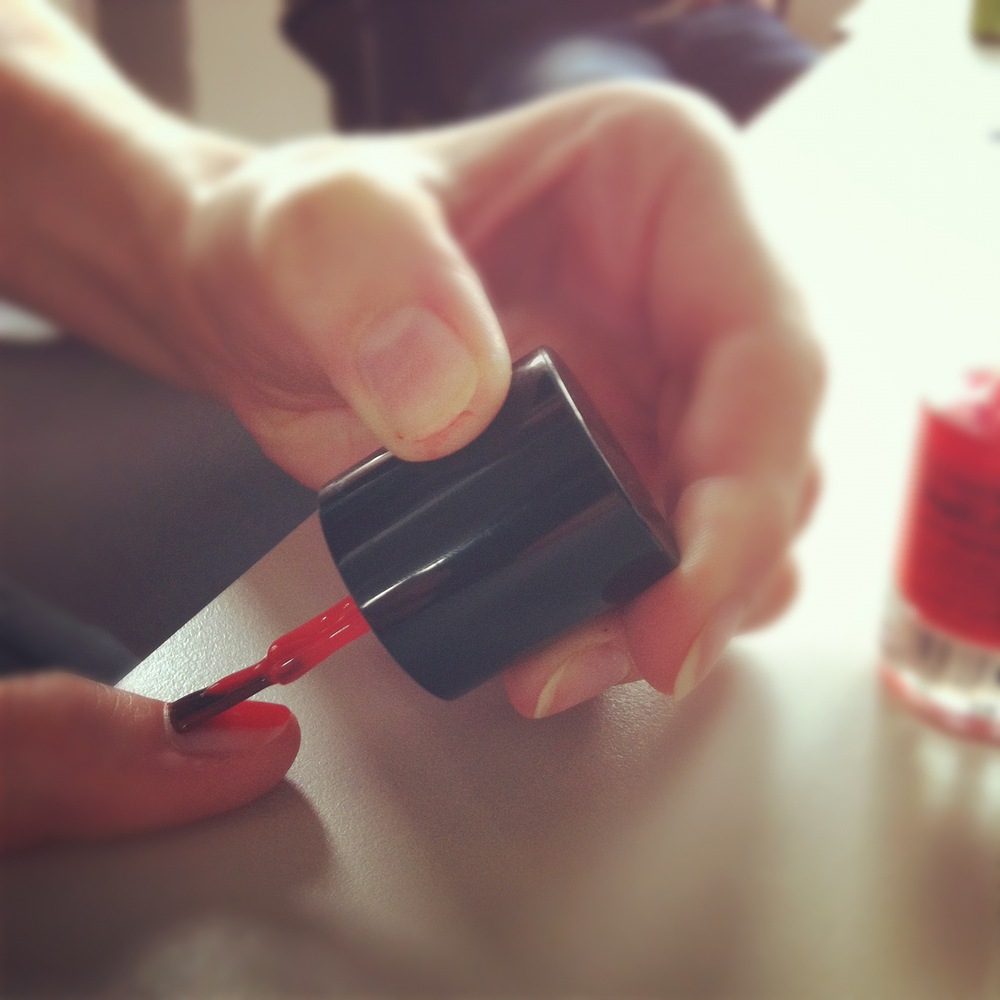 11:00 Uhr – Nägel lackieren in Corporate Colour. Leider haben nur die Mädels mitgemacht, die Jungs haben sich irgendwie gesträubt. Komisch.