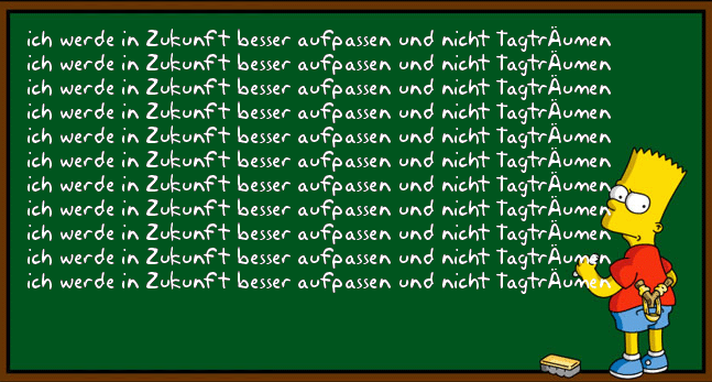 Abgefragt, um festzustellen, was letztendlich hängen geblieben ist, werden dann alle morgen und wer die Antworten nicht weiß, der muss zur Strafe hundertmal „ich werde in Zukunft besser aufpassen und nicht Tagträumen“ an das Whiteboard in der Cafeteria schreiben.